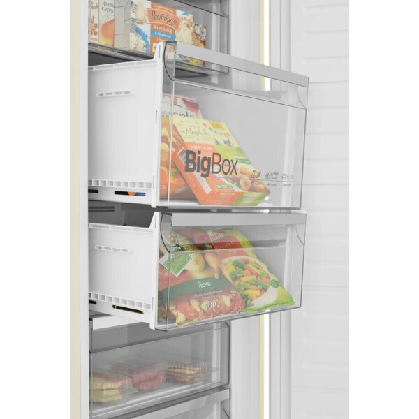 - Для повышенного комфорта и удобства загрузки крупных продуктов и больших упаковок с полуфабрикатами создан специальный ящик Big Box увеличенного объема и усиленной конструкции. Big Box настоящий хит и оправданная необходимость для большой морозильной камеры!