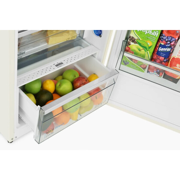 Maxi Fresh Zone специальное отделение, нижний выдвижной ящик на роликовых направляющих с регулировкой уровня влажности Humidity Control, в котором поддерживаются условия, оптимальные для хранения всех растительных продуктов. В комплекте есть дополнительный ящик для овощей и фруктов, который при необходимости можно убрать.
