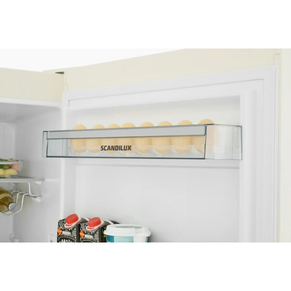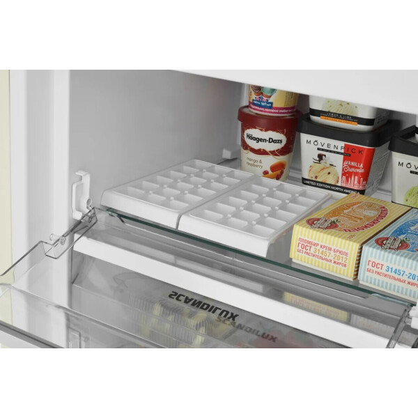 - Морозильная камера Scandilux дает уникальную возможность дополнительно увеличивать объем для еще более крупных продуктов: полки из закаленного стекла между секциями можно снимать. То есть, если вынуть ящик и полку под ним, то объем для крупногабаритного продукта сразу увеличится в 2 раза! Это позволит поставить посуду большого размера, целую тушку индейки или торт. Такую опцию предоставляют далеко не все бренды!