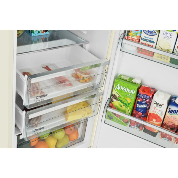 Chiller Zone (зона свежести или нулевая зона) - специальное отделение, удобный выдвижной ящик на роликовых направляющих с температурой, близкой к нулю, и определенным уровнем влажности, что является оптимальным условием для хранения свежих мясных и рыбных продуктов.