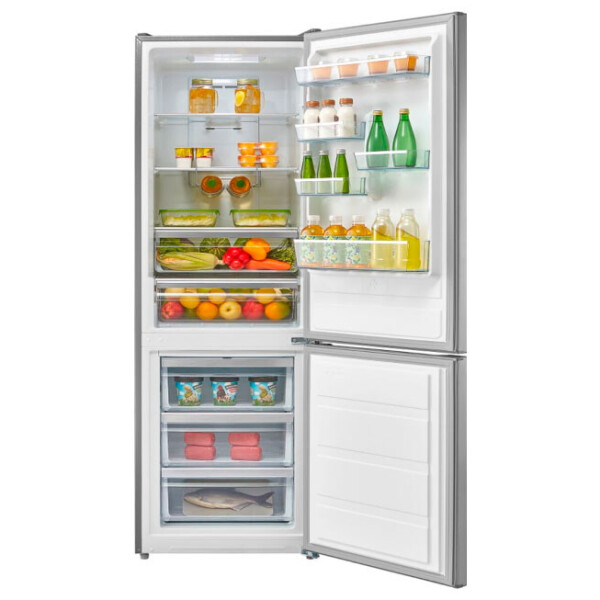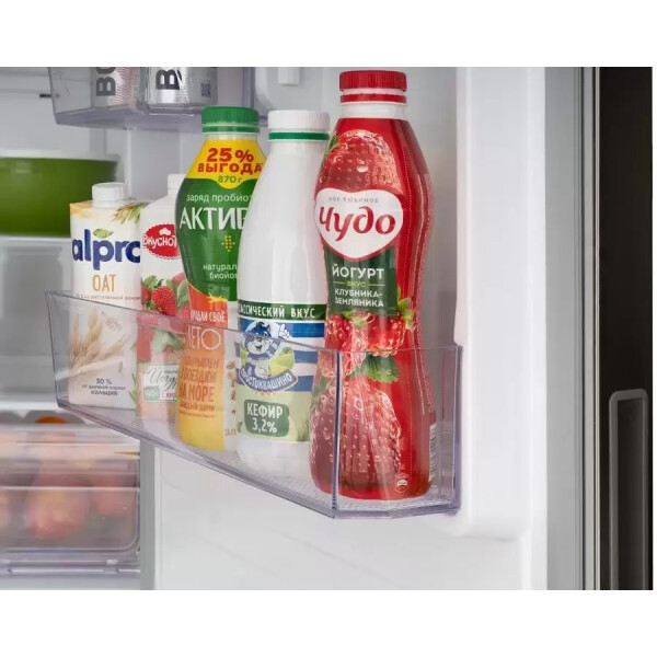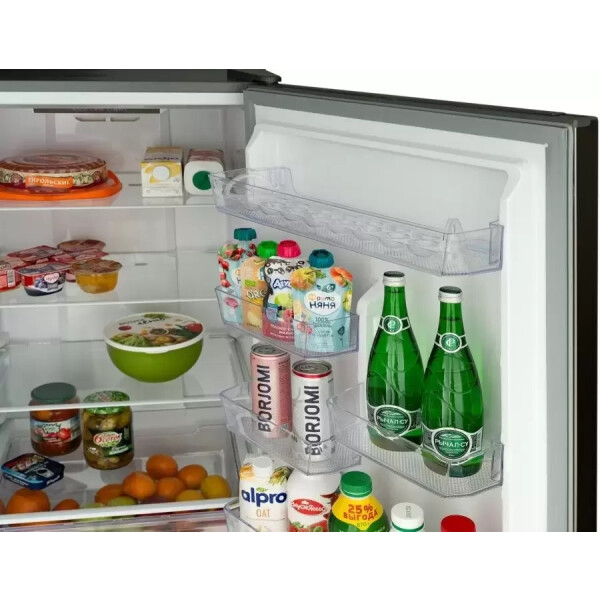 Полки в холодильной камере продуманы до мелочей, вместительны по ширине и высоте, 2 литровые бутылки с любимой газировкой легко разместятся на дверце, и не упадут при резком открытии дверцы.