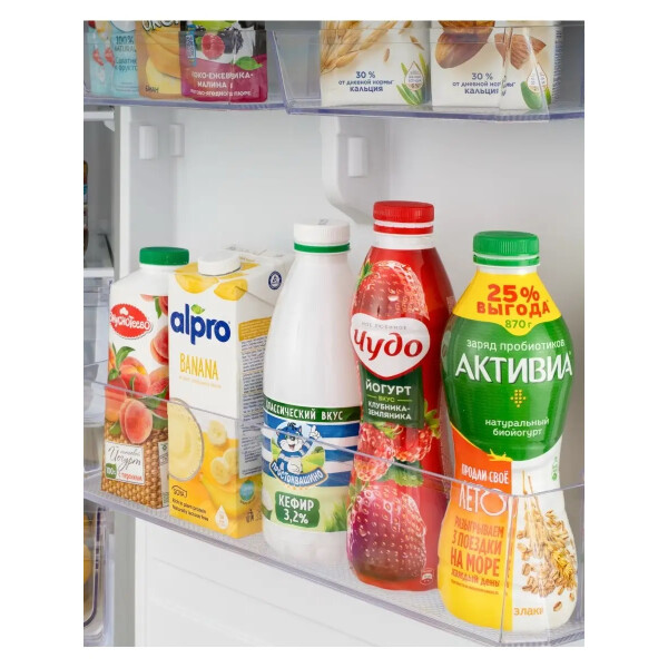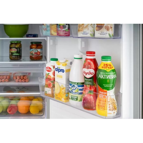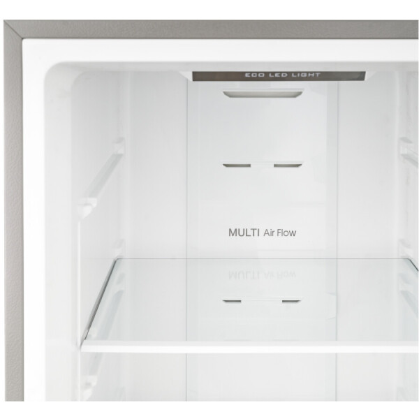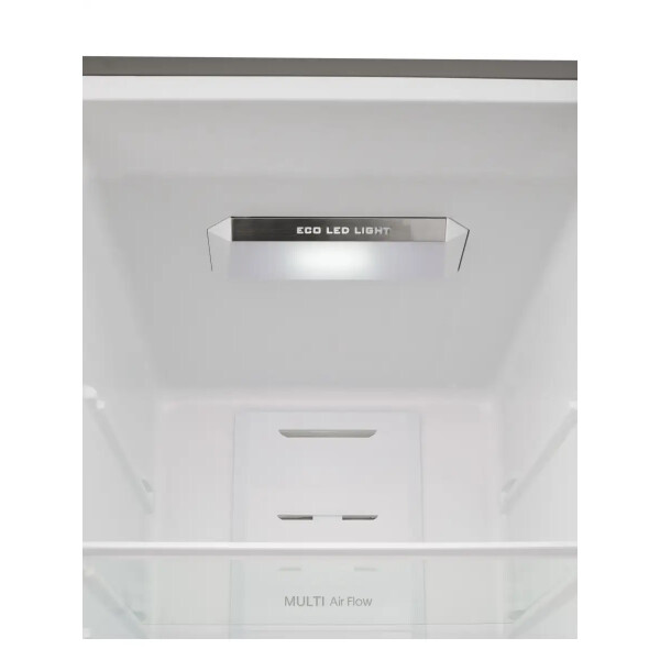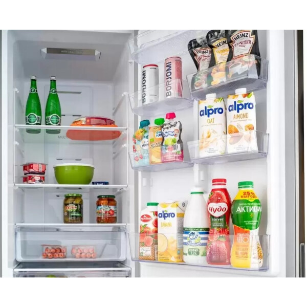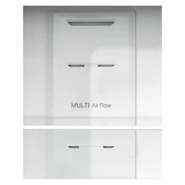 Также модель обладает технологией Multi-airflow, которая поддерживает идеальный уровень влажности в каждой камере благодаря чему охлажденный воздух циркулирует в холодильной и морозильной камерах не смешивая запахи продуктов и не допуская их высыхания.