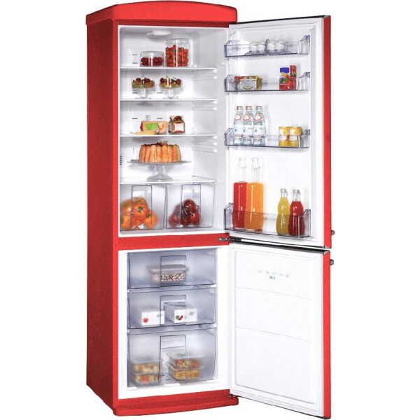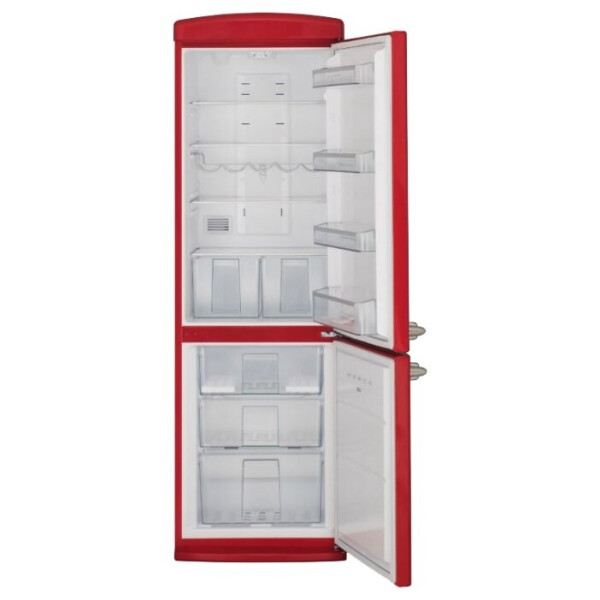 Холодильник Schaub Lorenz SLUS335R2 вместительная двухкамерная модель с нижним расположением морозильного отделения. Его характерной особенностью является оригинальный дизайн в стиле ретро. Ярко-красный корпус выглядит чрезвычайно стильно и привлекает внимание.