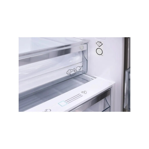 Основная камера вмещает 355 л, морозильная 155 л. Также есть зона свежести объемом 24 л. Конфигурацией предусмотрены технология Gentle AirFlow, система No Frost и LED-подсветка в обоих отделениях.
