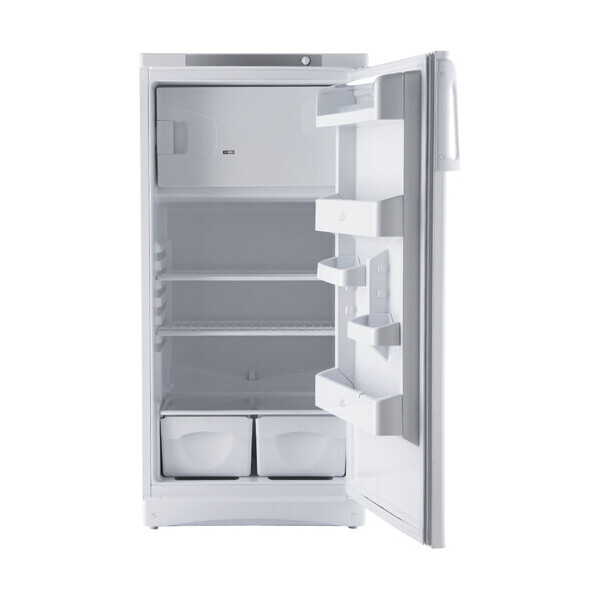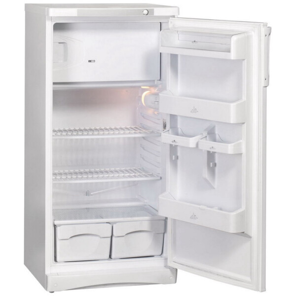 Холодильник с верхней морозильной камерой Stinol STD 125 вместительная модель с удобной системой организации внутреннего пространства. Полки можно регулировать по высоте. Капельная автоматическая система значительно облегчает размораживание холодильной камеры.