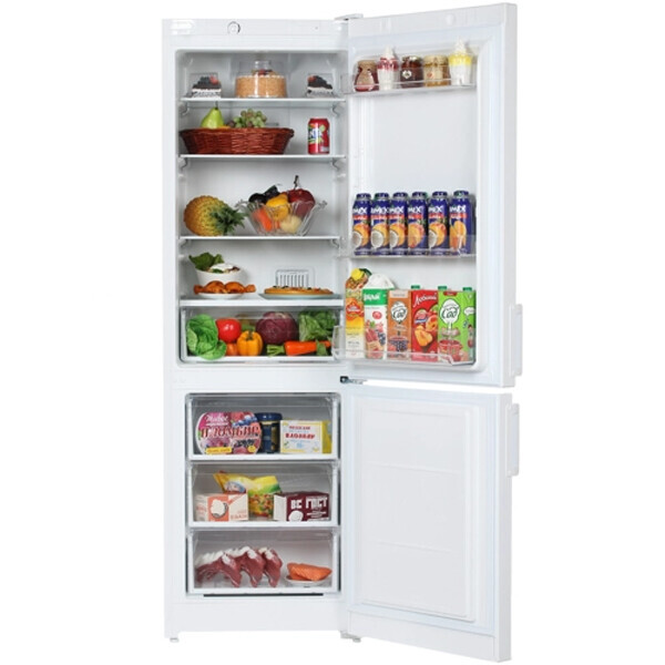 Холодильник с нижней морозильной камерой Stinol STN 185 вместительная модель с удобной системой организации внутреннего пространства. Стеклянные полки с регулируемой высотой могут выдерживать нагрузку до 40 кг каждая, а прозрачные ящики в нижней части длительное время сохраняют свежесть овощей и фруктов. В морозилке используются выдвижные пластиковые лотки, обеспечивающие быстрый доступ к продуктам.