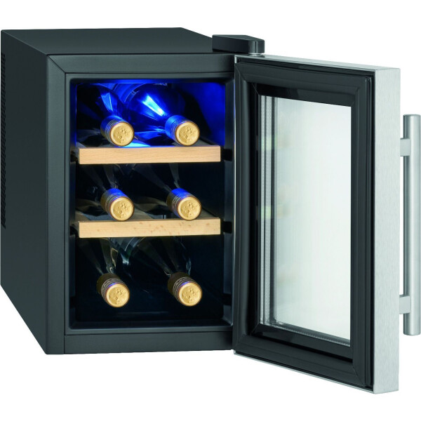 Винный шкаф ProfiCook (Профи Кук) PC-WK 1231 отлично подойдет в качестве домашнего бара, как для городской квартиры, так и загородного дома. Выполненный в строгом дизайне шкаф отличается компактными размерами вмещает всего 6 стандартных бутылок вина. Модель имеет всего одну зону с двумя деревянными полками съемного типа. Дверца имеет тройное остекление с защитой от УФ-излучения.