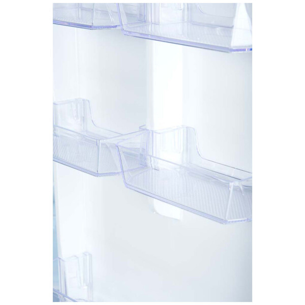 В морозильной камере установлено 3 полностью выдвигающихся ящика, а в холодильном отделении один, который является одновременно и зоной свежести специальным отделением для хранения овощей, фруктов и зелени. Изготовлен из по-настоящему безопасного пищевого пластика.