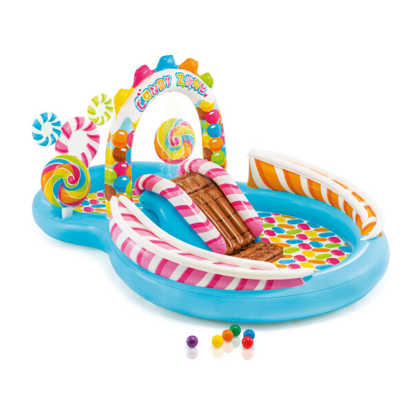 Детский игровой центр Candy Zone Intex 57149 с красочной раскраской. Изготовлен из винила толщиной 0.30мм. В комплекте 6 небольших мячей, 2 надувные конфеты. Горка для катания шаров. Для работы разбрызгивателя, необходимо подключить садовый шланг с подачей воды. Насос в комплект не входит