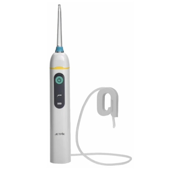 Сочетает в себе очищающее действие зубной нити (смарт-флосса), воды и воздуха. Легкий в использовании, очень эффективный и экономит время. Здоровые десны и чистые зубы уже через 7 дней. Клинически доказано, что удаляет до 99% зубного налета. Инновационная комбинация давления воды и пульсирующей флосс-системы (20-25 колебания в сек) удаляет остатки пищи глубже и быстрее, между зубами и ниже линии десен, в труднодоступных местах вокруг брекетов, между зубными имплантатами и коронками. Пульсирующая под давлением воды смарт флосс-система создает дополнительную силу трения. Лабораторно доказано что JETPIK на 240% более эффективно удаляет зубной налет и биопленку, чем обычные водные ирригаторы. Эффективный, безопасный и простой в использовании. Идеально подходит для тех, кто с имплантатами, коронками, брекет-системами, мостовидными протезами, пародонтальными карманами. Портативный и компактный - по размерам не больше электрической зубной щетки, благодаря встроеной литиевой батарее заряжается как мобильный телефон через базовое зарядное устройство или USB разьем. Как жидкость для ирригации можно использовать не только воду, но и лечебные растворы. Удобный специальный стакан JETPIK или любая емкость подойдет как резервуар, благодаря портативной силиконовой клипсе JETPIK, которая идет в комплекте с набором.