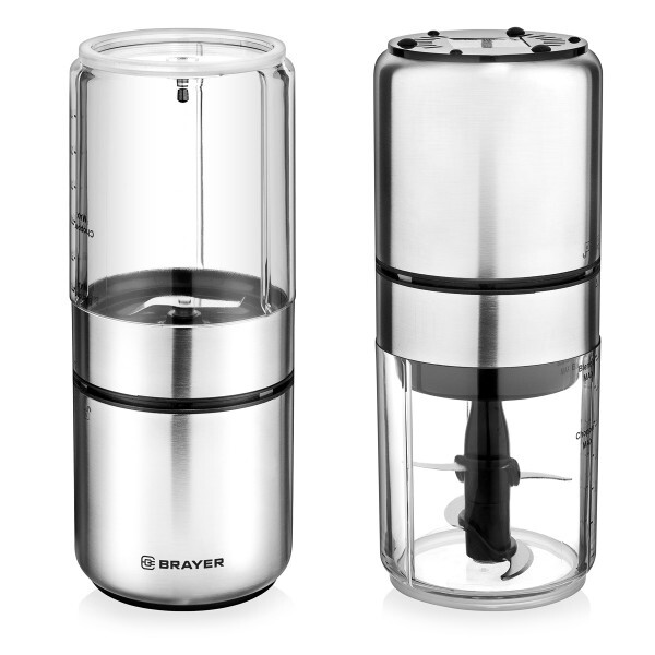 ИзмельчительBrayerBR1401, 350 Вт, 500 мл Устройство отлично подходит для измельчения мягких и твердых продуктов. В комплекте предусмотрено 2 чаши из нержавеющей стали. Устройство работает только при закрытой крышке