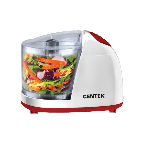 Измельчитель Centek CT-1390 представлен в компактном белоснежном корпусе с контрастными красными элементами. Устройство действует с мощностью 350 Вт и обладает одной рабочей скоростью. Пластиковый прибор дополнен вместительной чашей на 350 мл и импульсным режимом измельчения.