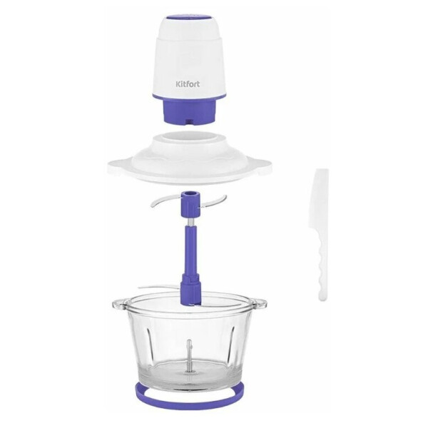 Измельчитель Kitfort КТ-3050 компактное устройство с белым пластиковым корпусом, дополненным фиолетовыми вставками. Прозрачная емкость позволит визуально определить степень готовности. С помощью этого прибора вы смешаете и измельчите разные ингредиенты в считанные секунды.