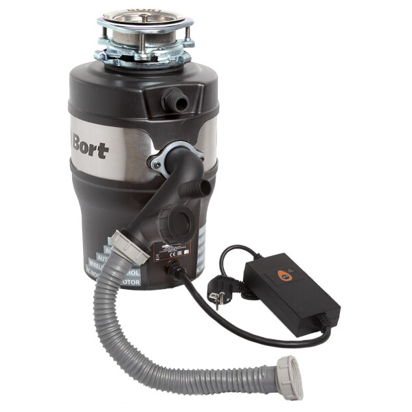 Измельчитель пищевых отходов, а проще — диспоузер BORT Alligator Max, за пару минут поможет избавиться от мусора, накопившегося в ходе приготовления еды. Это высокотехнологичное кухонное оборудование избавит вас от регулярного выноса ведра. Очистки от фруктов и овощей, залежавшиеся в холодильнике продукты, смело отправляйте во встроенный под кухонную раковину измельчитель. Использовать его очень просто - включите воду и нажмите на беспроводную кнопку. Только в измельчителе Bort Alligator Max применена кнопка без батареек. И с помощью крышки-толкателя удалите отходы. По окончанию работы он автоматически отключится. Функция авто реверса помогает легко справится с большим объёмом отходов. Надежный индукционный мотор в 560 Вт, встроенный усилитель мощности и объем нержавеющей камеры в 1600 мл, позволяют использовать эту модель не только в домашних условиях, но и в небольших закусочных. Ведь его производительность составляет 5,2 кг/мин. Важно! Для установки измельчителя толщина мойки в районе сливного отверстия должна быть не более 20мм. В комплект с BORT Alligator Max входят: фильтрующая сетка с резиновой пробкой, проталкиватель, пульт дистанционного управления, монтажный узел и сливная трубка. Срок гарантии — 2 года.