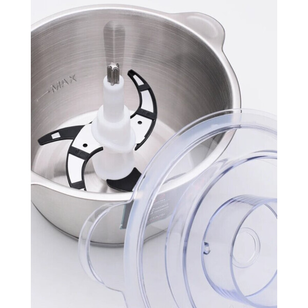 Этот компактный кухонный прибор выполняет функции 3х самых важных помощников на кухне: мясорубки, блендера и миксера. Он позволяет легко приготовить мясной фарш и измельчить сыр, лук, морковь, зелень, орехи, незаменим для приготовления детского питания.