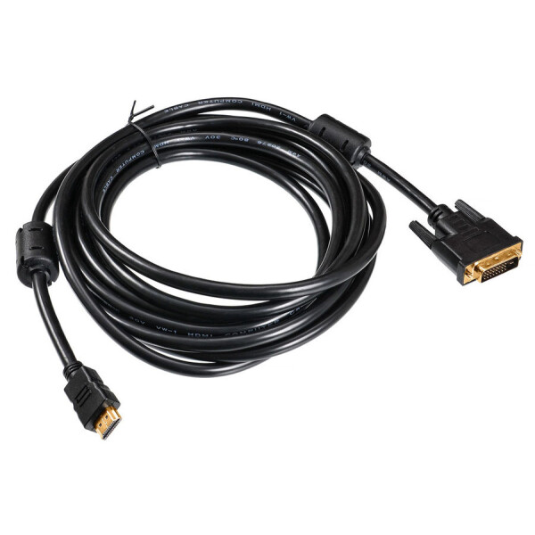 Кабель BURO HDMI (m) - DVI-D (m), GOLD, ферритовый фильтр, 5м, черный [hdmi-19m-dvi-d-5m].