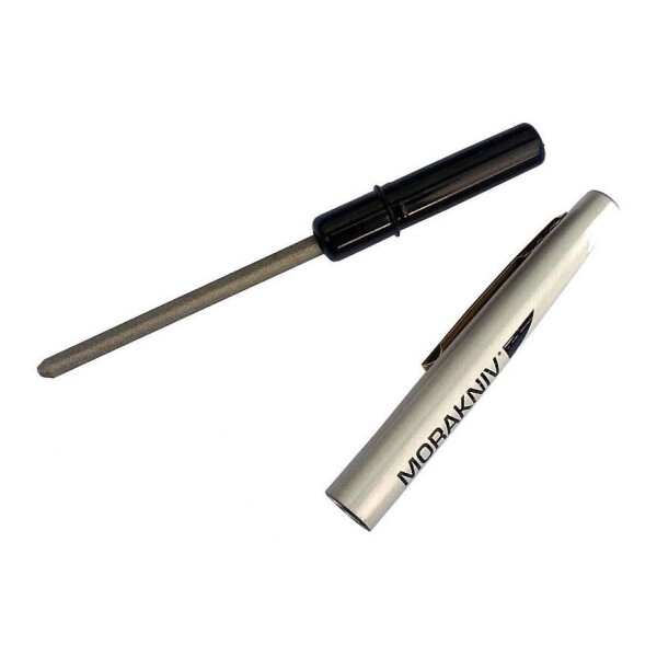 Оригинальная заточка в виде стержня. Колпачок как у шариковой ручки позволяет пристегивать точило к карману или ремню. Универсальная форма бруска позволяет легко заточить вещи с ровными лезвиями, а также, получившие широкое распространение зубчатые ножи и рыболовные крючки — на стержне совмещены.