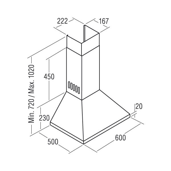 Вытяжка Cata Omega 600 X /L подойдёт к современным кухонным гарнитурам и добавит уюта Вашей кухне. Максимальная производительность составляет 1115 м/час. Модель может работать в режимах отвода воздуха в вентиляционную шахту и рециркуляции. Благодаря трём скоростям работы вытяжка будет эффективна как в маленьких кухнях, так и на больших кухонных площадях.