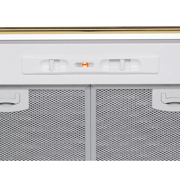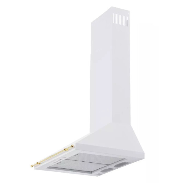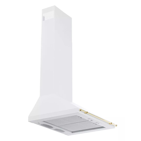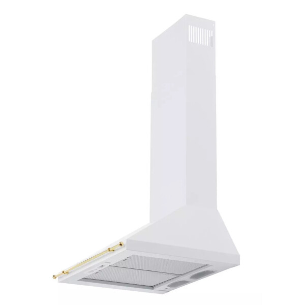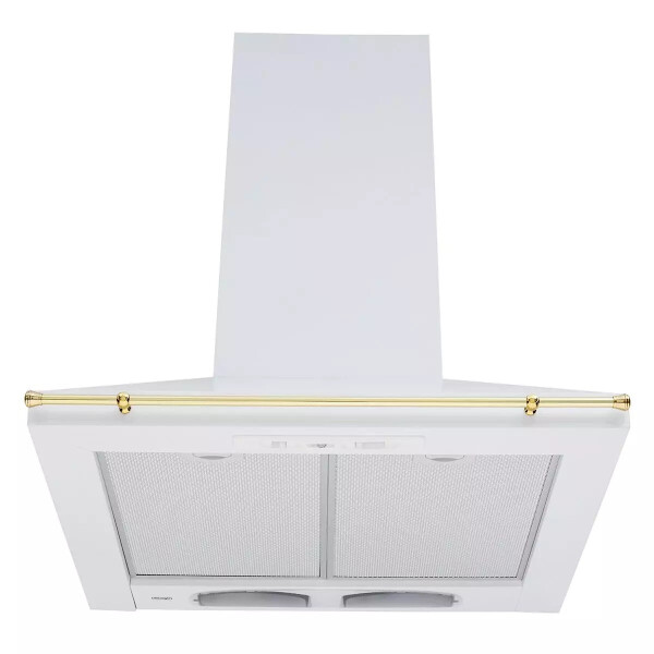 Каминная вытяжка KCX-C60 WH от DeLonghi из коллекции Кантри выполнена в белом цвете и дополнена изысканной золотистой фурнитурой.