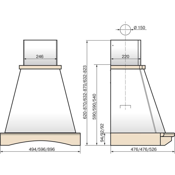 | Диаметр патрубка воздуховода | 150