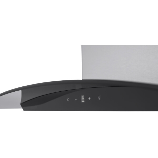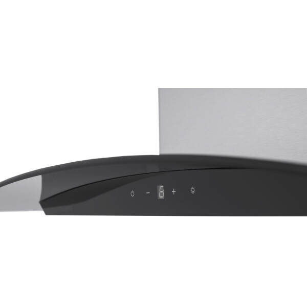 Каминная пристенная вытяжка. Управление:сенсорное. Цвет:черный/нержавеющая сталь.