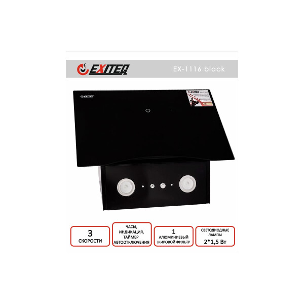 Модель вытяжки EXITEQ EX-1116 оборудована датчиком задымления и температурным датчиком. При установке AUTO режима работы вытяжки эти датчики активируются и изделие автоматически включается и выключается в зависимости от изменения температуры и задымления на Вашей кухне. Так же присутствует датчик загрязнения жировых кассет с индикацией на электронном табло, который сигнализирует о необходимости очистки данных кассет.