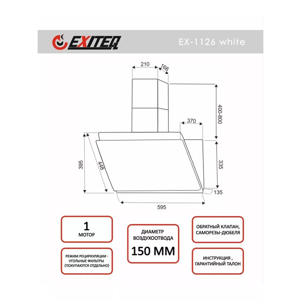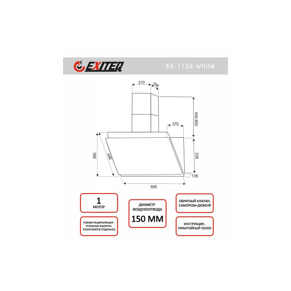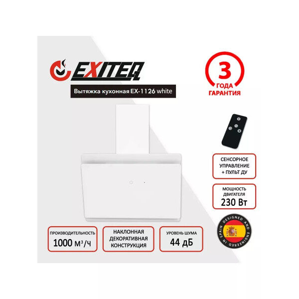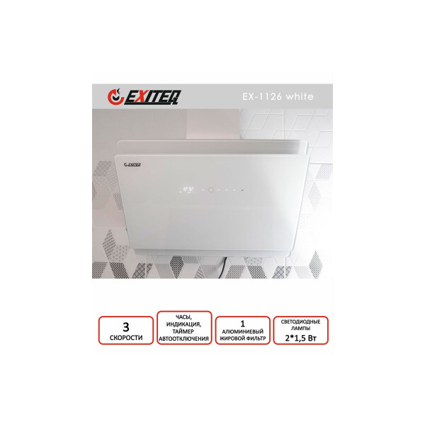 Модель вытяжки EXITEQ EX-1126 оборудована датчиком задымления и температурным датчиком. При установке AUTO режима работы вытяжки эти датчики активируются и изделие автоматически включается и выключается в зависимости от изменения температуры и задымления на Вашей кухне. Так же присутствует датчик загрязнения жировых кассет с индикацией на электронном табло, который сигнализирует о необходимости очистки данных кассет.