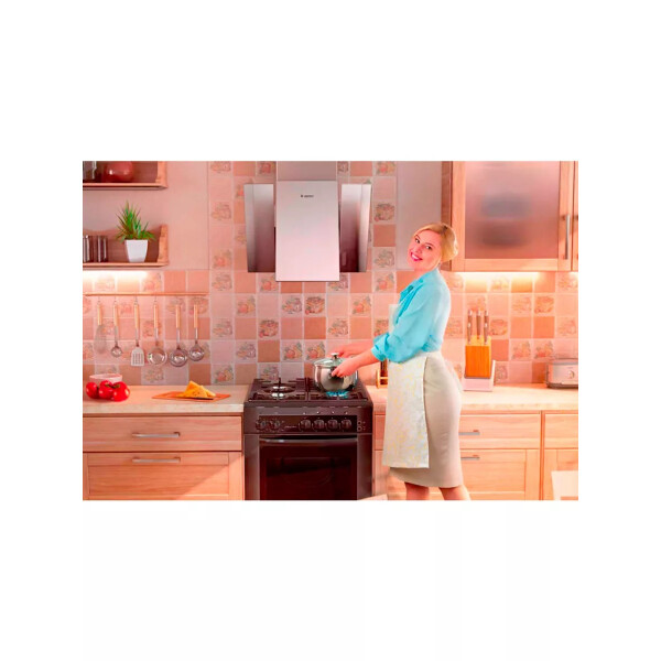 Шум, производимый движущимися элементами установки, находится в пределах комфортного для человеческого слуха диапазона и снижается, если выбрать менее активный режим работы. Всего вытяжка Gefest ВО 3603 К69 может функционировать в трех программах интенсивности в зависимости от поставленной задачи. Управление предельно простое: кнопки выведены на переднюю панель, а для повышения комфорта готовки на корпусе предусмотрена подсветка рабочей зоны.