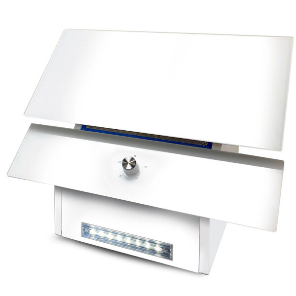 Прибор оснащен системой индикации и LED-подсветкой. Антивозвратный клапан предотвращает появление неприятных запахов. Диаметр штуцера равен 120/150 мм. Устройство питается от сети с напряжением 220 В. Длина кабеля 0,9 м. Потребляемая мощность 160 Вт.