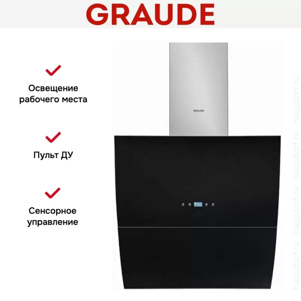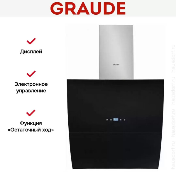 Дизайн: Вытяжка Graude DH 60.3 GE имеет стеклянный фронт черного цвета с расположенным на нем дисплеем с сенсорным управлением. Короб из нержавеющей стали прочен и неприхотлив в уходе.