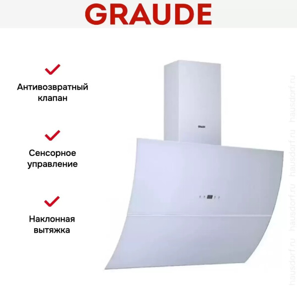 Дизайн:Вытяжка Graude DH90.3WE вбелом цвете имеет большую производительность, что позволяет быстро очистить воздух накухне стандартных размеров. Дисплей ссенсорным управлением нетребует усилий при нажатии ипрост вприменении.