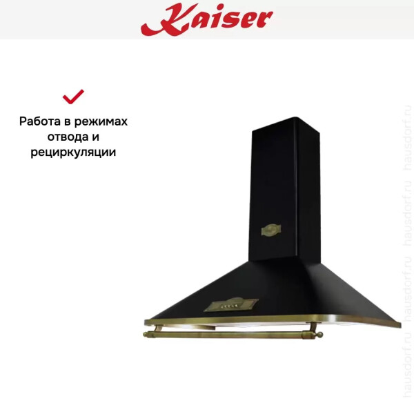 Каминная вытяжка Kaiser A 6315 Em обеспечивает эффективное очищение воздуха от нежелательных запахов, конденсата и частиц жира. Модель из коллекции Empire отличается эксклюзивным дизайном и изящной бронзовой фурнитурой. Прибор работает на трех скоростях в режимах отвода и рециркуляции. Галогенные лампы обеспечивают равномерное освещение рабочей зоны и являются дополнительным источником света на кухне.