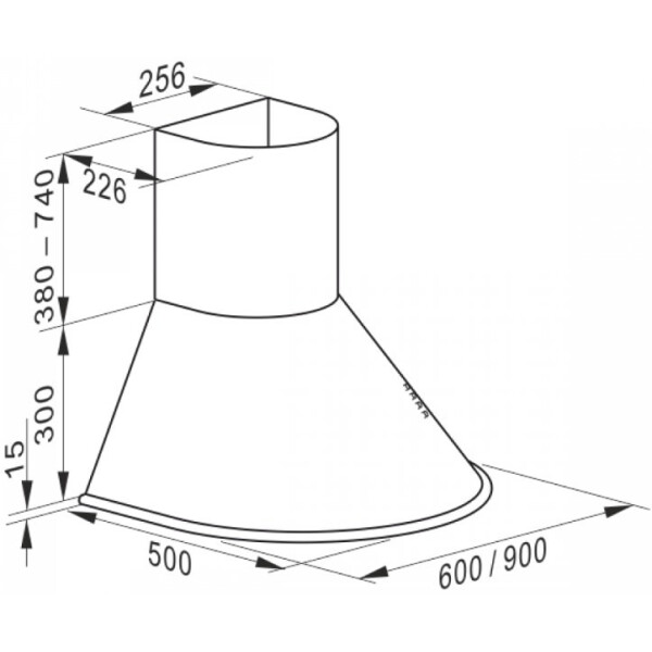 Отличается высокой производительностью 910 м³/ч и пониженным уровнем шума 56 Дб. Для работы в режиме рециркуляции требуется установка угольных фильтров. Переключение скоростей и зажигание света производится нажатием на кнопку.