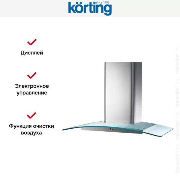 Korting KHC9954X многофункциональная купольная вытяжка в стильном современном исполнении. Дизайн сочетает стальную поверхность со стеклом.