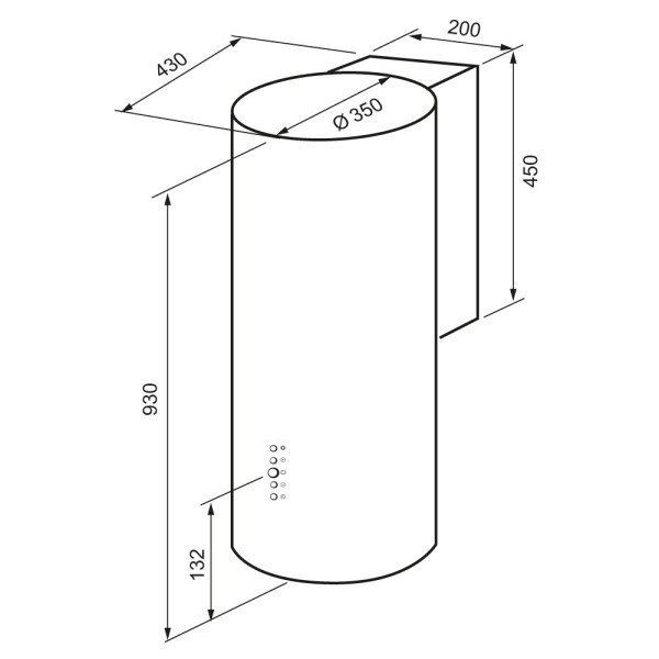 TINA - дизайнерская вытяжка цилиндрической формы с пристенной установкой.