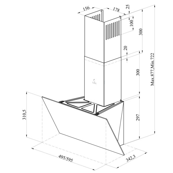 Модель оснащена кнопочным управлением. 5 хромированных кнопок на передней панели позволяют быстро включить вытяжку или свет, изменить режим простым нажатием.
