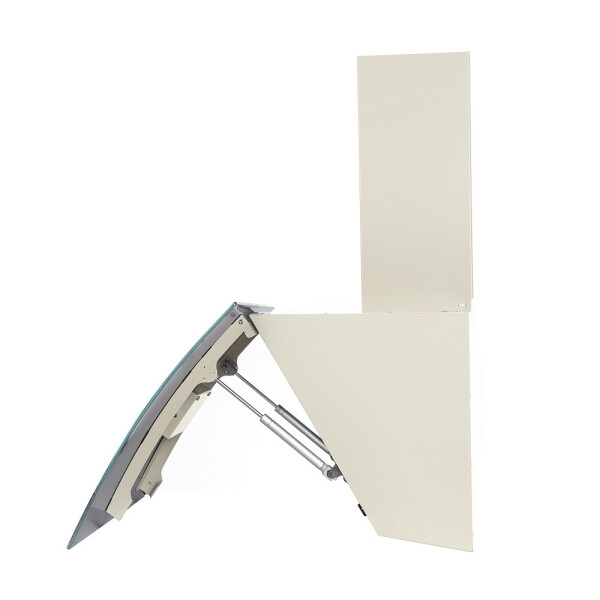 Современная вытяжка наклонного типа с богатым функционалом и интересным, дизайнерским решением, скрывающим жироулавливающий фильтр за изогнутым глянцевым стеклом. Вытяжка выполнена из высококачественной стали и отделана прочным закаленным стеклом, позволяющим комфортно очищать его поверхность.