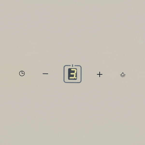 Вытяжка оснащена современным сенсорным управлением 3-мя скоростями. Временной таймер позволяет выполнять проветривание помещения и автоматически выключится через заданное время.