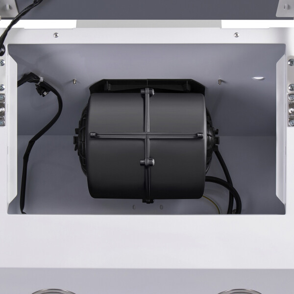 Полная потребляемая мощность составляет 180 Вт, а максимальная производительность 650 м3/ч, что позволяет работать на кухнях большой площади и эффективно очищать воздух.