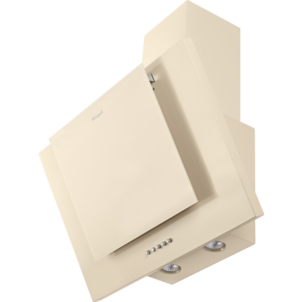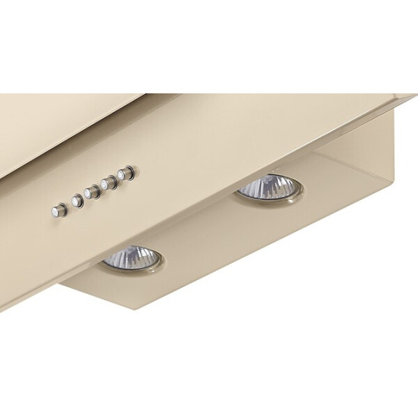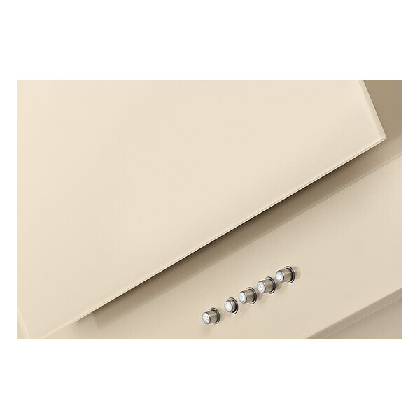 Изящная, элегантная, и при этом мощная наклонная вытяжка от Weissgauff, выполненная в бежевом цвете, сочетает в своём дизайне металл и стекло, что делает её более универсальной при использовании в интерьере кухни.