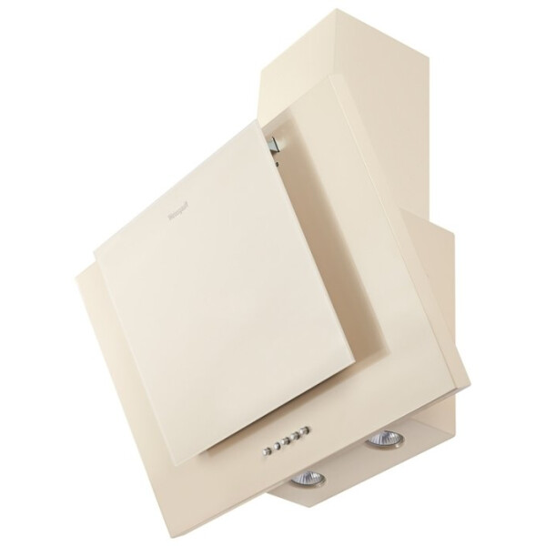 Изящная, элегантная, и при этом мощная наклонная вытяжка от Weissgauff, выполненная в бежевом цвете, сочетает в своём дизайне металл и стекло, что делает её более универсальной при использовании в интерьере кухни