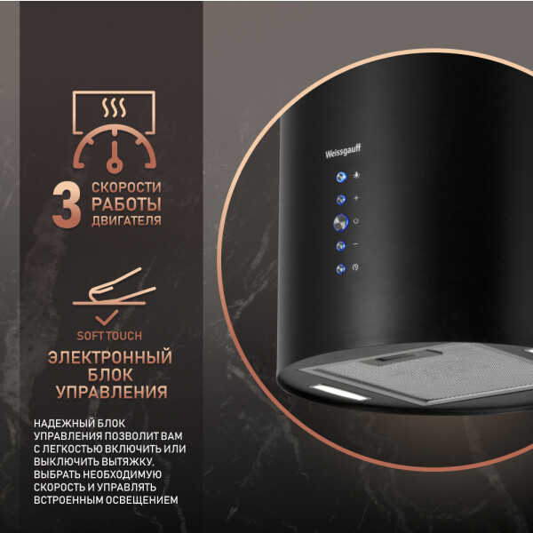 Вытяжка пристенная Weissgauff Gracia BL предназначена для использования в индивидуальных домашних хозяйствах. Удаляет пары и запахи, возникающие в процессе приготовления пищи. Работает на 3 скоростях, есть таймер автоотключения, отвод и циркуляция. Управляется механически (кнопки). Работает тихо. Двойное освещение.