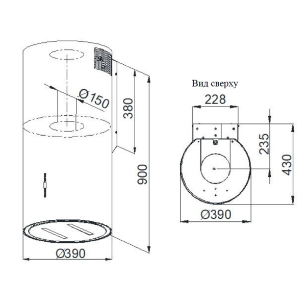 | Диаметр патрубка воздуховода | 150