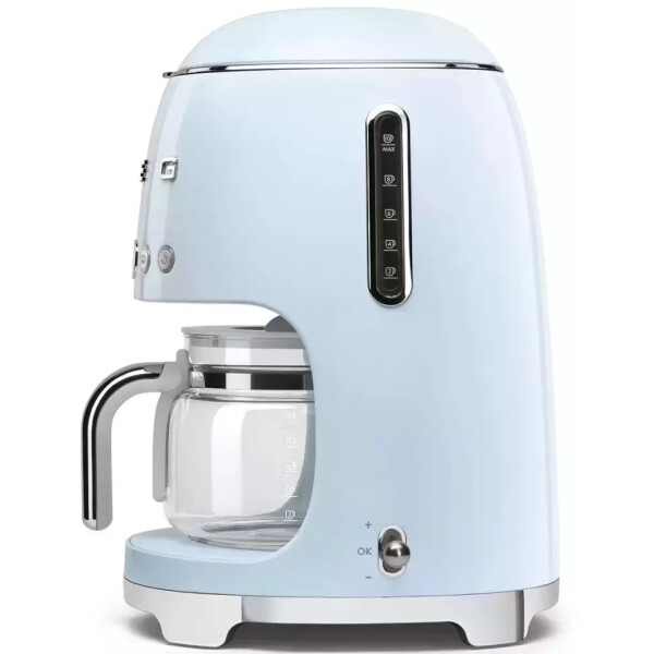 Капельная кофеварка SMEG DCF02PBEU, выполненная в стиле 50-х годов, подчеркнёт индивидуальность интерьера и станет настоящим украшением Вашей кухни в квартире или загородном доме. Предназначена для приготовления кофейных напитков разной крепости. Стеклянный кувшин рассчитан на 10 чашек, оборудован ручкой и крышкой. Корпус изготовлен из окрашенного металла.
