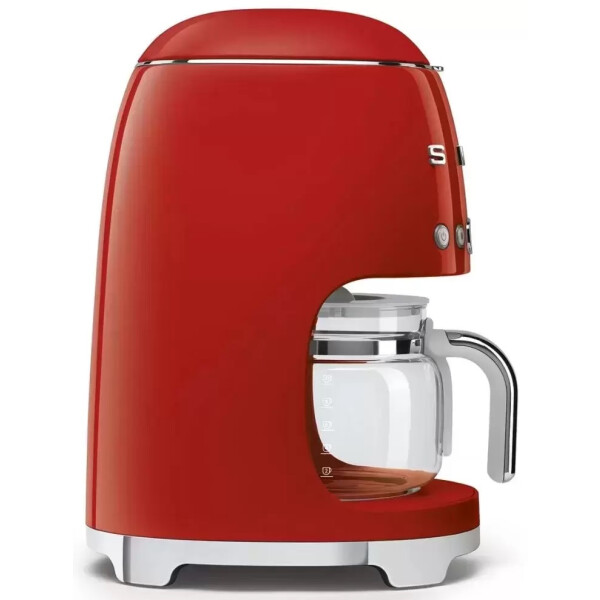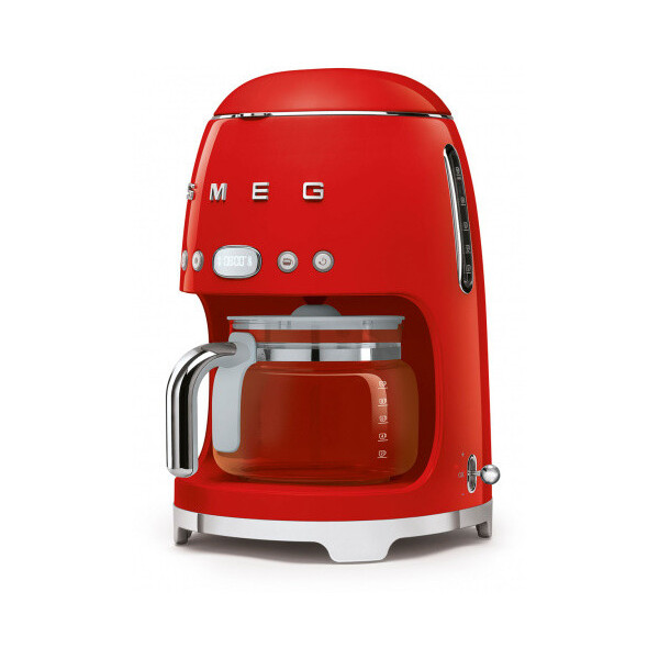 Капельная кофеварка Smeg DCF02RDEU красного цвета, с объёмом в 10 чашек, имеет цифровые часы - LED-дисплей и удобную панель управления.
