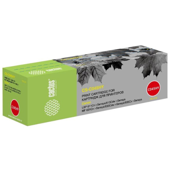 Тонер Картридж Cactus CS-C045HY желтый, ресурс 2200страниц, для Canon LBP 611Cn/613Cdw/631Cn/633Cdw/635Cx.