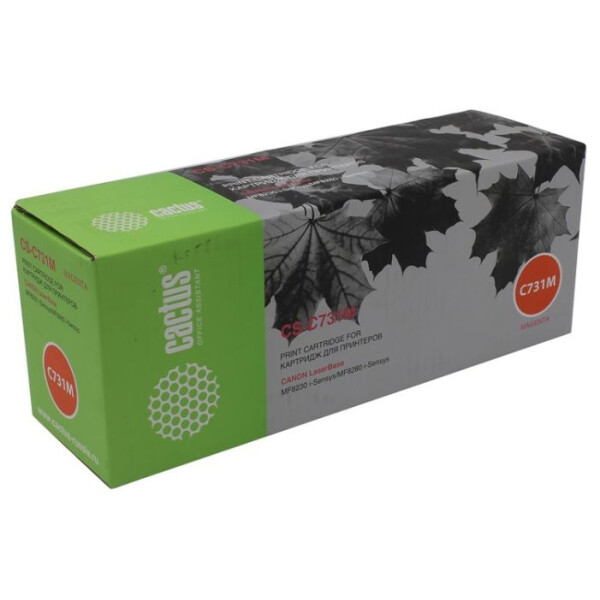 Картридж лазерный Cactus CS-C731M – расходный материал для использования в технике. Он является совместимым. Но по уровню качества картридж соответствует оригинальному элементу. Эта модель создана для лазерных устройств. Особый состав тонера обеспечивает нанесение на бумагу. Порошок пурпурного цвета, он входит в комплект оснастки оборудования для выполнения цветной печати. Отпечатки четкие, удается полноценно использовать их в дальнейшем.