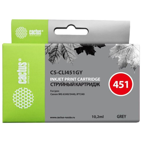 Струйный картридж Cactus CS-CLI451GY является полным аналогом оригинального картриджа Canon CLI-451GY. Предназначен для использования в принтерах Canon Pixma MG6340, MG7540.