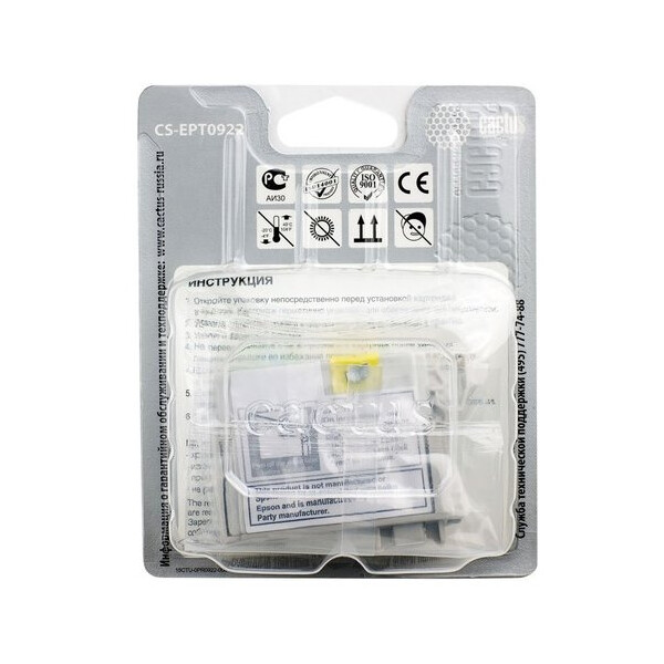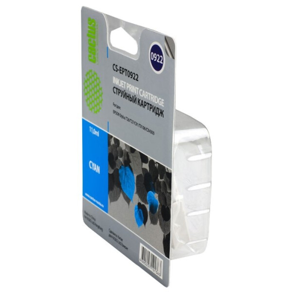 Струйный картридж Cactus CS-EPT0922 является полным аналогом оригинального картриджа Epson C13T09224A10. Предназначен для использования в принтерах Epson Stylus C91, C240, CX4300, T26, T27, TX106, TX109, TX117, TX119.