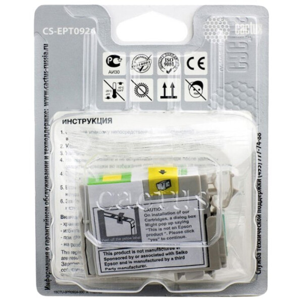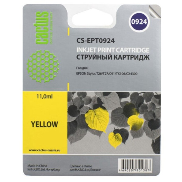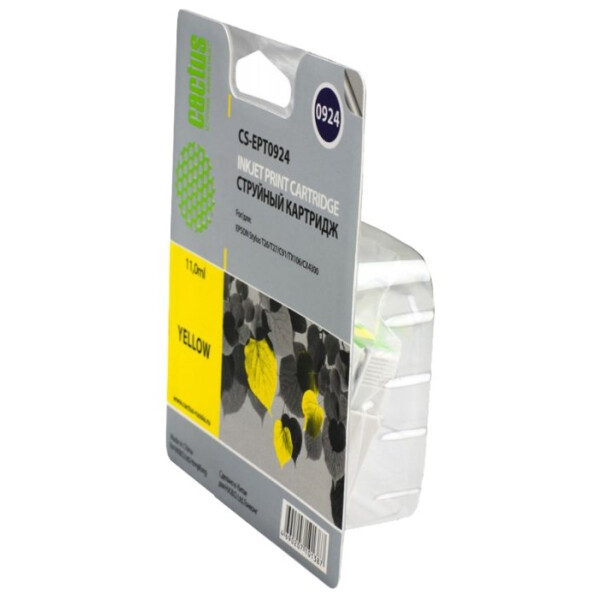Струйный картридж Cactus CS-EPT0924 (C13T10844A10) желтый для принтеров Epson Stylus C91, C240, CX4300, T26, T27, TX106, TX109, TX117, TX119. Ресурс 280 страниц.